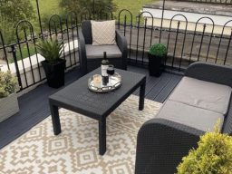 The outdoor dining area is a fantastic space to relax and enjoy meals in the fresh air while taking in the great surrounding views. Furnished for comfort and practicality, it provides the perfect setting for everything from a leisurely breakfast to an evening meal under the open sky.